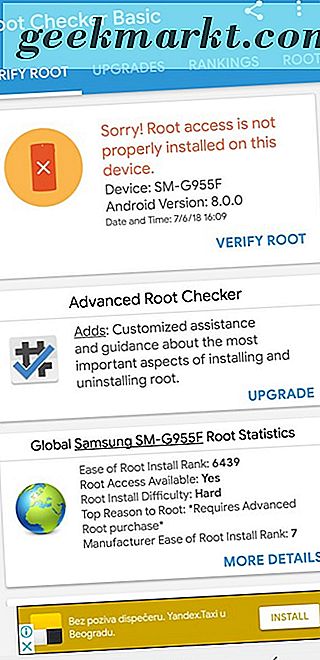 Aslında, temel olarak iki farklı yönteme - kök erişimi olsun ya da olmasın - geliyor. Her iki yöntem de oldukça basit olsa da, öncelikle Android cihazınızda kök kullanılabilirliğini kontrol etmemiz gerekiyor. Google Play'den ücretsiz Root Checker uygulamasını indirin.