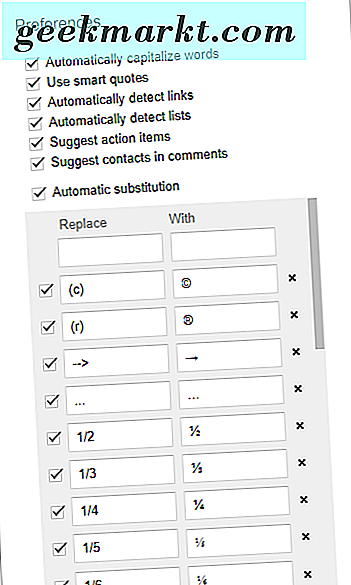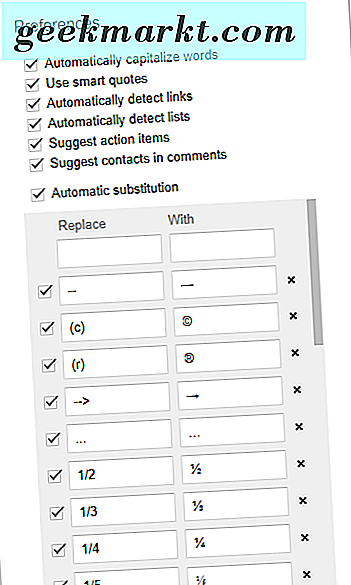 Google Dokümanlarını, bir komut işaretiyle girilen herhangi bir karakteri otomatik olarak değiştirecek şekilde yapılandırabilirsiniz. Örneğin, kelime işlemciyi iki tire (- -) çizgi ile değiştirmek için yapılandırabilirsiniz. Bunu yapmak için, doğrudan aşağıda gösterilen pencereyi açmak için Araçlar ve Tercihler'i tıklayın.