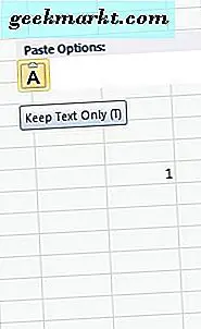 Yapıştır Seçenekleri altında bir pano simgesi vardır. Bu, herhangi bir bağlantı olmadan hücrede URL’yi kopyalamak için seçebileceğiniz Metin Tutamadı düğmesidir. Alternatif olarak, Yalnızca Metin Tut seçeneğini seçmek için Excel araç çubuğunun Yapıştır düğmesindeki küçük oku tıklatın.
