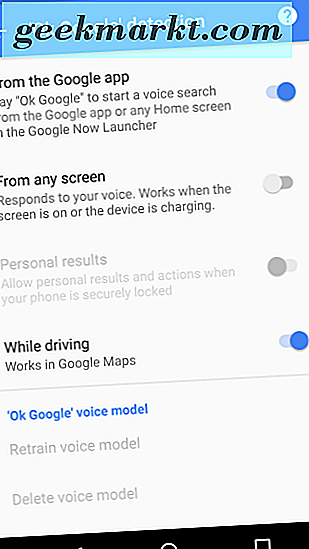 - Ayarlar, Ses ve 'Tamam Google' algılama'yı seçin.