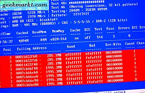 MemTest86 + hata bulursa, takas RAM yuvalar arasında yapışır ve testi tekrar çalıştırır. MemTest86 + hala hata bulursa, RAM'in mi yoksa anakart yuvasının mı olduğunu belirlemeniz gerekir. Hata RAM ile hareket ederse, hatalı olabilir. Hatalar aynı yerde kalırsa, anakart olabilir.